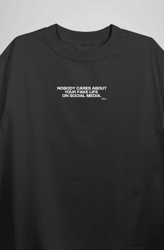 Fake Life Black Printed Oversized T-shirt | Drop Shoulder T-shirt