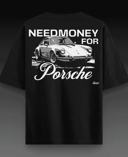 Need Money for Porsche Black Printed Oversized T-shirt | Drop Shoulder T-shirt