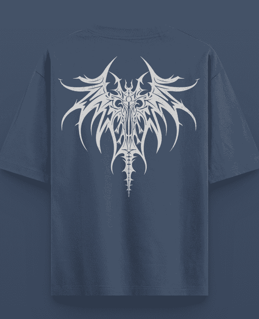 Minimal Blue Printed Oversized T-shirt | Drop Shoulder T-shirt