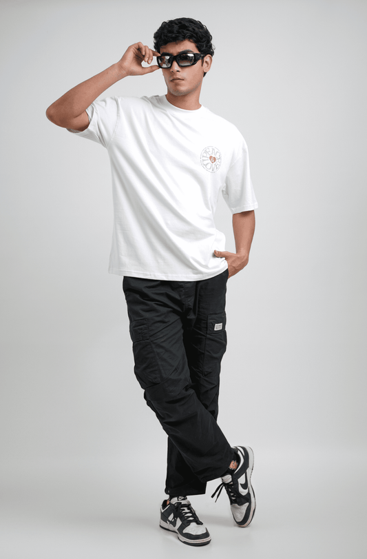 Minimal White Printed Oversized T-shirt | Drop Shoulder T-shirt
