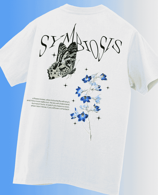 Symbiosis White Printed Oversized T-shirt | Drop Shoulder T-shirt