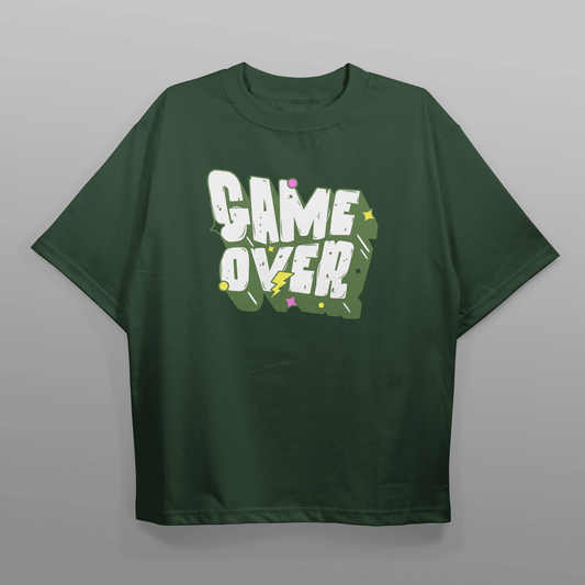 Game Over Green Drop Shoulder T-shirt | Oversized T-shirt